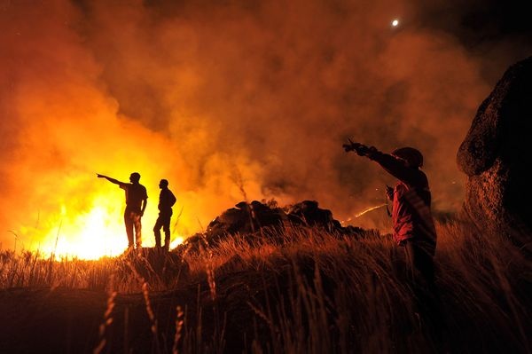 | Người dân quan sát vụ cháy rừng ở dãy núi Serra Caramulu, Bồ Đào Nha. Chính quyền địa phương đã huy động khoảng 100 lính cứu hỏa và 25 phương tiện hỗ trợ để dập tắt đám cháy. Ảnh: EPA |