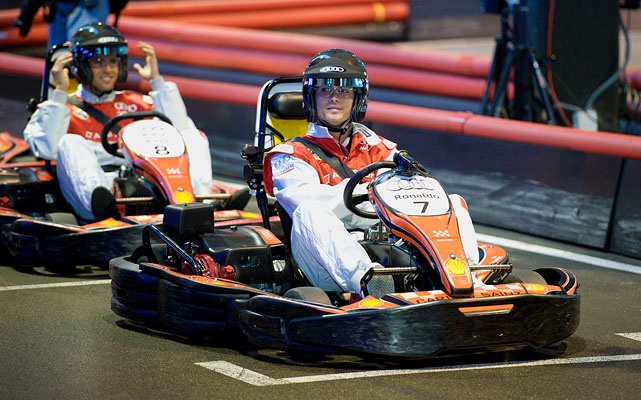 Háo hức tham gia đua xe cùng đồng đội tại Madrid. |