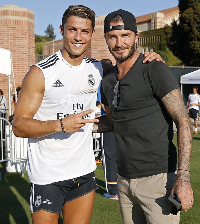 | Hạnh phúc khi được chụp cùng đàn anh David Beckham trong chuyến du đấu trước mùa giải tại Mỹ năm 2013. |