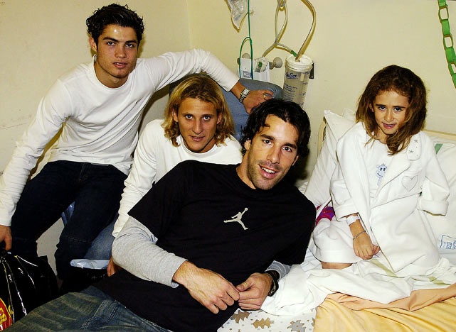 | Tân binh của Manchester United bẽn lẽn chụp ảnh cùng các đàn anh là Diego Forlan và Ruud van Nistelrooy trong một chuyến từ thiện thăm viện nhi ở Manchester. |