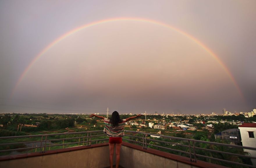 | Bầu trời tuyệt đẹp với cầu vồng sau cơn mưa. |