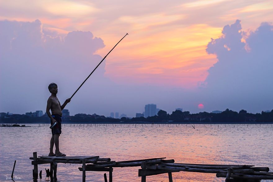 | Hoàng hôn lộng lẫy trên hồ Tây ở Hà Nội đã thu hút ống kính của cô. |
