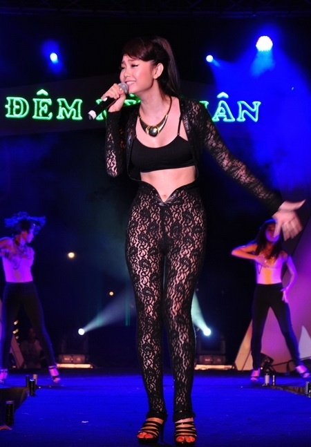 | Bộ trang phục ren phản cảm cũng là một bài học đắt giá cho Minh Hằng mỗi khi lựa chọn đồ biểu diễn. Sau sự cố này, cô phải nhận mức phạt 3,5 triệu đồng. |