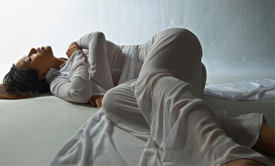 Bộ ảnh Mai Phương Thúy trong tà áo dài trắng mỏng manh không mặc nội y.
