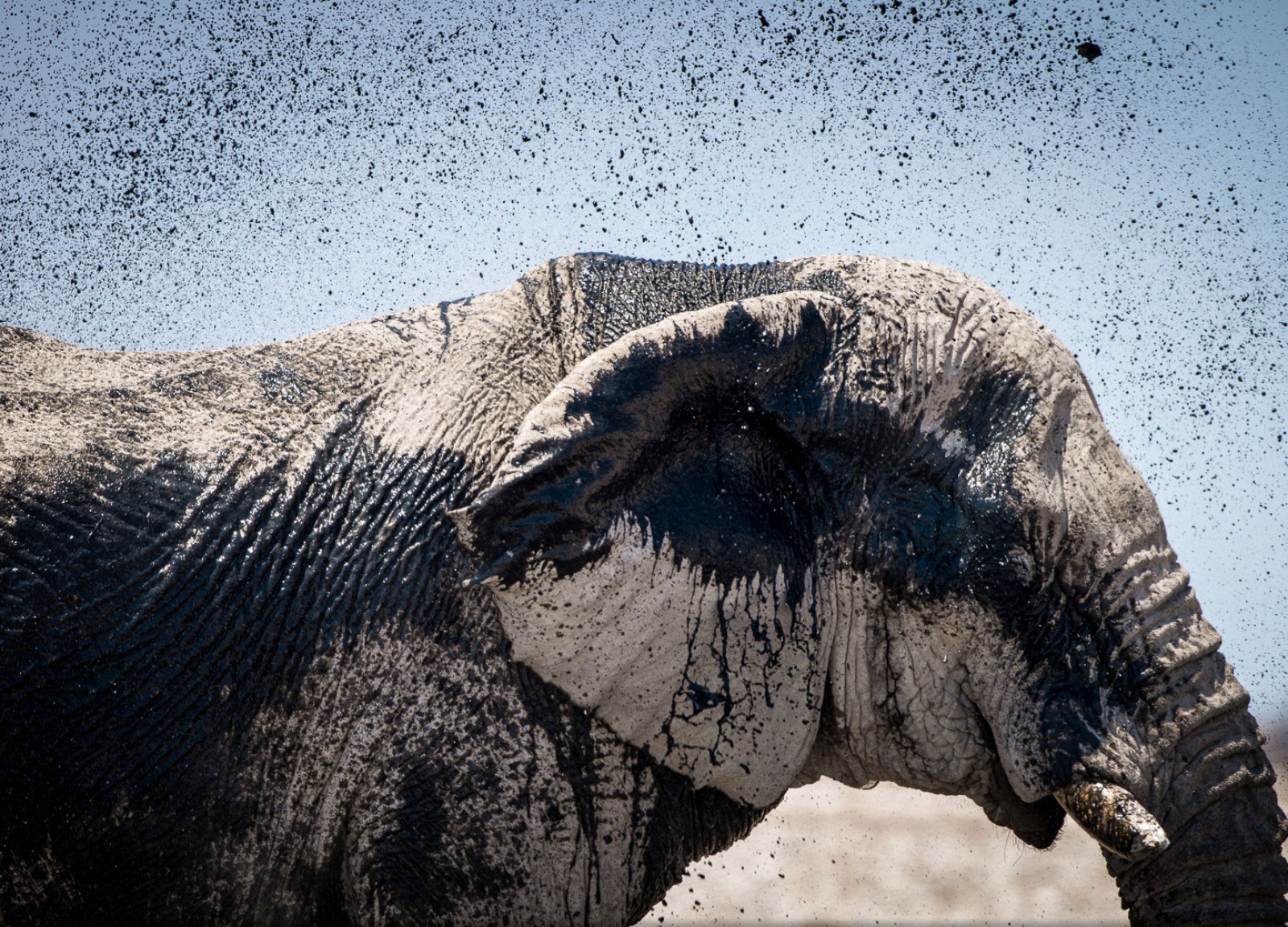 | Voi vẩy nước trên cơ thể ở Công viên Quốc gia Etosha, Namibia. Ảnh: National Geographic |