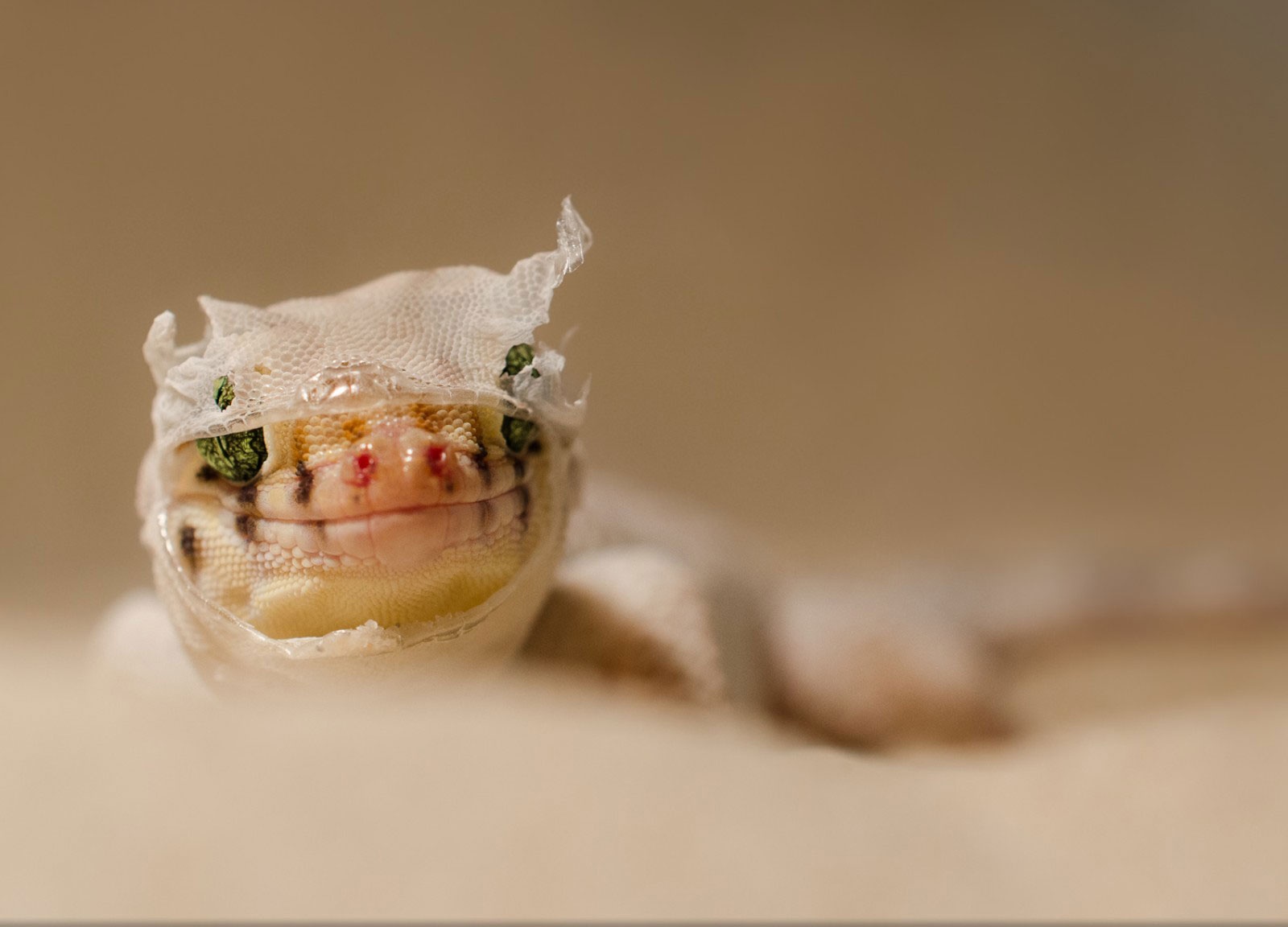 | Thằn lằn Teratoscincus roborowskii đang lột da ở Terrarium, Ulm, Đức. Ảnh: National Geographic |