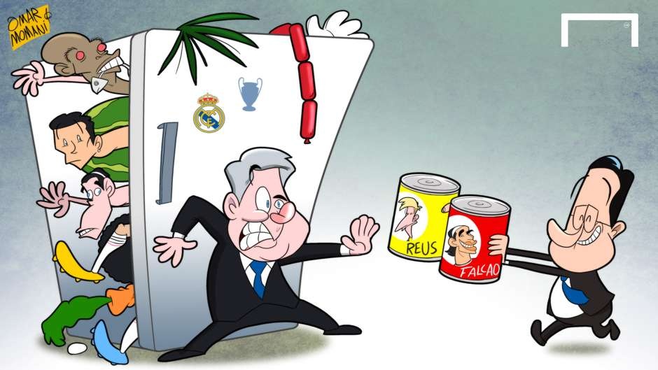 Chủ tịch Florentino Perez rất muốn chiêu mộ Falcao và Reus về nhưng HLV Ancelotti từ chối với lý do Bernabeu không còn chỗ trống. Tuy nhiên, thực tế chiến lược gia người Ý không thích bộ đôi nói trên do lịch sử chấn thương của họ.
