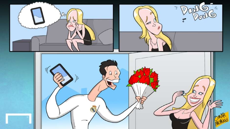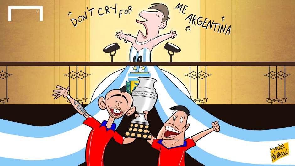 Messi lỡ chức vô địch cùng Argentina, Ronaldo mời người đẹp ăn tối, Sterling gia nhập Man City với giá kỷ lục là đề tài giúp họa sĩ Omar Momani cho ra mắt các tác phẩm hài hước.
