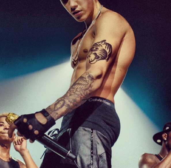 Bên cạnh sở thích xăm hình, chàng ca sĩ tuổi teen này còn nghiện mặc quần tụt và cởi trần khoe thân.