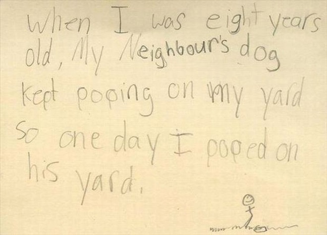 | Một số lời nhắn khiến người xem không khỏi bất ngờ về độ dí dỏm. "Khi tôi 8 tuổi, con chó nhà hàng xóm cứ sủa ở sân nhà tôi. Vì vậy một ngày tôi đã sủa ở sân nhà nó". |