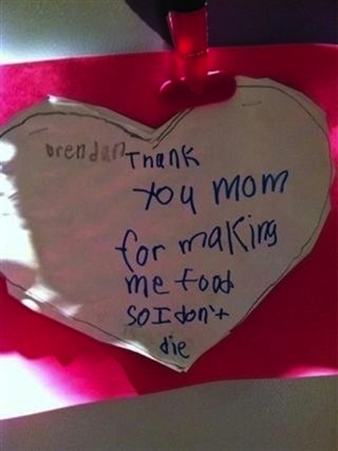 | Bredan với lời nhắn rất "thực tế" dành cho mẹ: "Cảm ơn mẹ vì làm thức ăn cho con, vì vậy con không chết". |