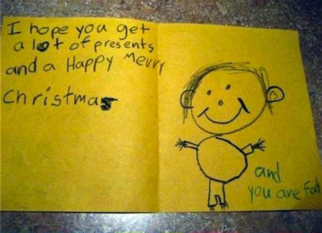 | Ngoài lời chúc có được nhiều quà và giáng sinh vui vẻ, cô bạn nhỏ này còn khuyến mãi thêm hình vẽ bạn và mình cùng béo. |
