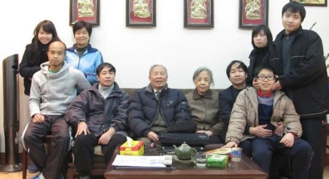 | Hai cụ hạnh phúc bên con cháu (ảnh FBNV). |