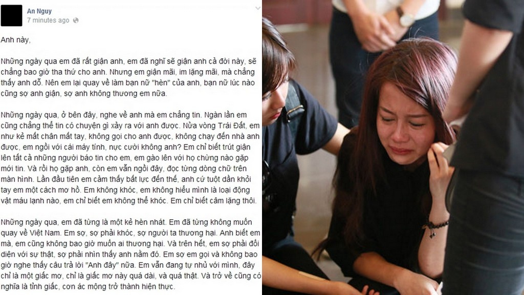 An Nguy không tin tình yêu là vĩnh cửu nhưng sẽ chẳng thể ngờ được chuyện tình giữa mình và Toàn Shinoda lại kết thúc bằng lằn ranh giữa sự sống và cái chết. Lặng lẽ trở về Mỹ sau lần cuối nhìn mặt bạn trai, An Nguy đã đăng những dòng chia sẻ chân thật và đau đớn trước những mất mát mình đã và đang gánh chịu trong suốt thời gian qua.