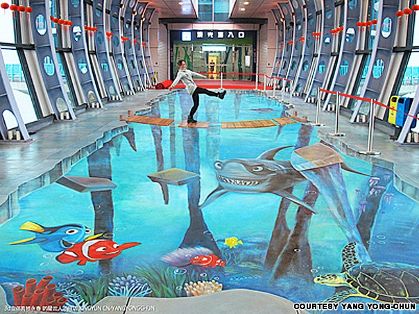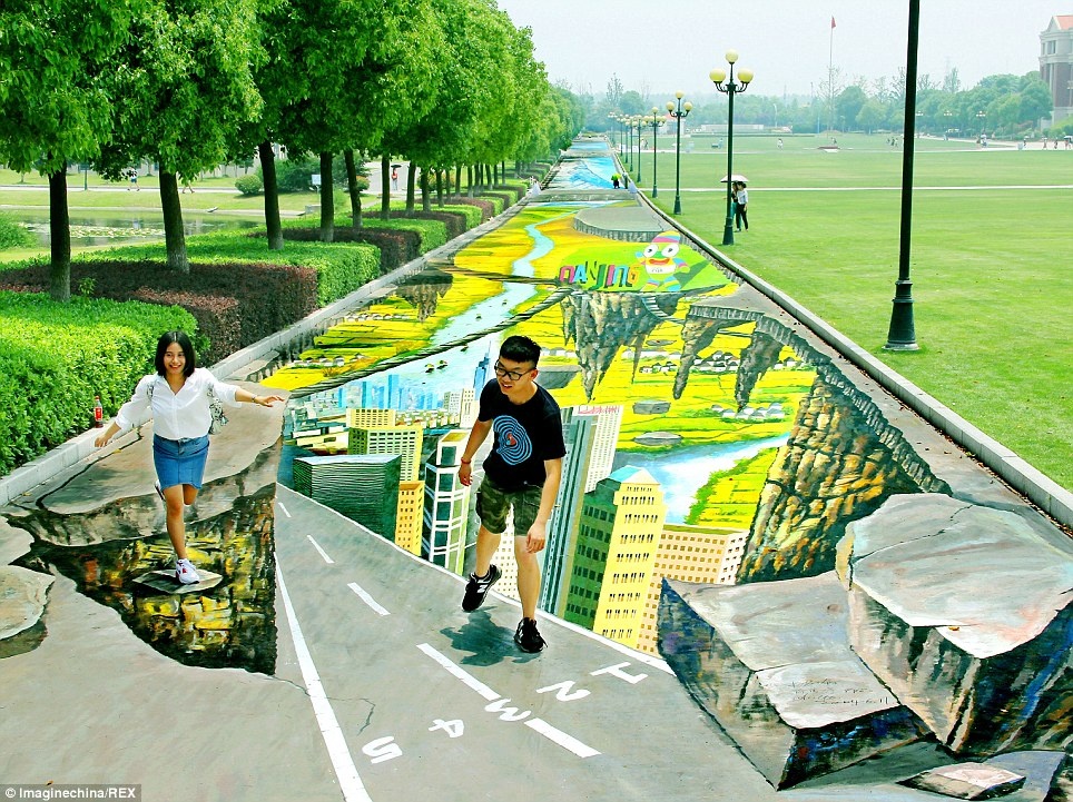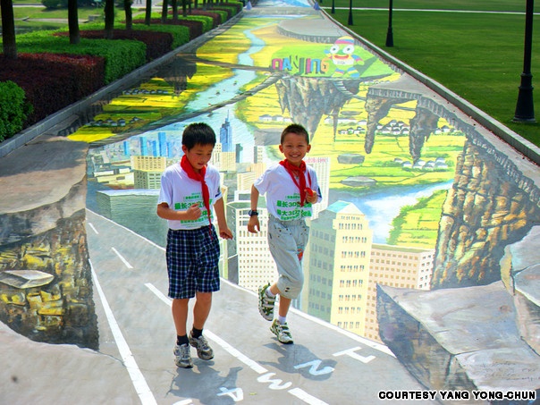 Yang Yongchun là một trong những nghệ sĩ vẽ tranh 3D nổi tiếng ở Trung Quốc. Các tác phẩm của anh thường gây được sự chú ý của mọi người. Ảnh: CNN |