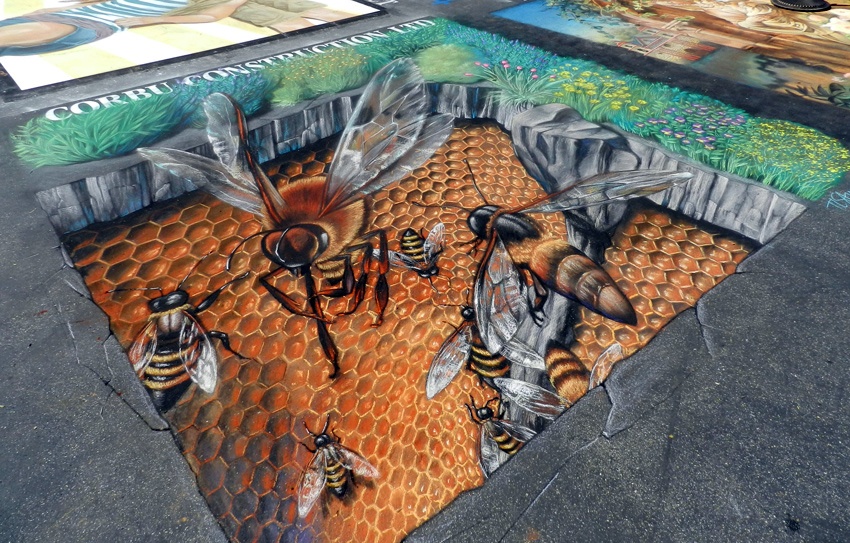 Tracy Lee Stum là nữ họa sĩ nắm giữ kỷ lục vẽ graffiti đường phố từ năm 2006. Một tổ ong mật do Stum vẽ trên đường. Thầy dậy của cô là Edgar Muller, người xác lập kỷ lục bức tranh 3D rộng nhất thế giới năm 2009. Ảnh: Daily Mail |