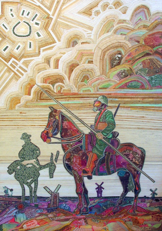 | Lấy cảm hứng từ nhân vật Don Quixote của nhà văn Cervantes, Wilde đã ghép thành bức tranh người lính vai khoác súng và đeo mặt nạ phòng độc quân sự mang tên "Ước vọng của Don Quixote". |