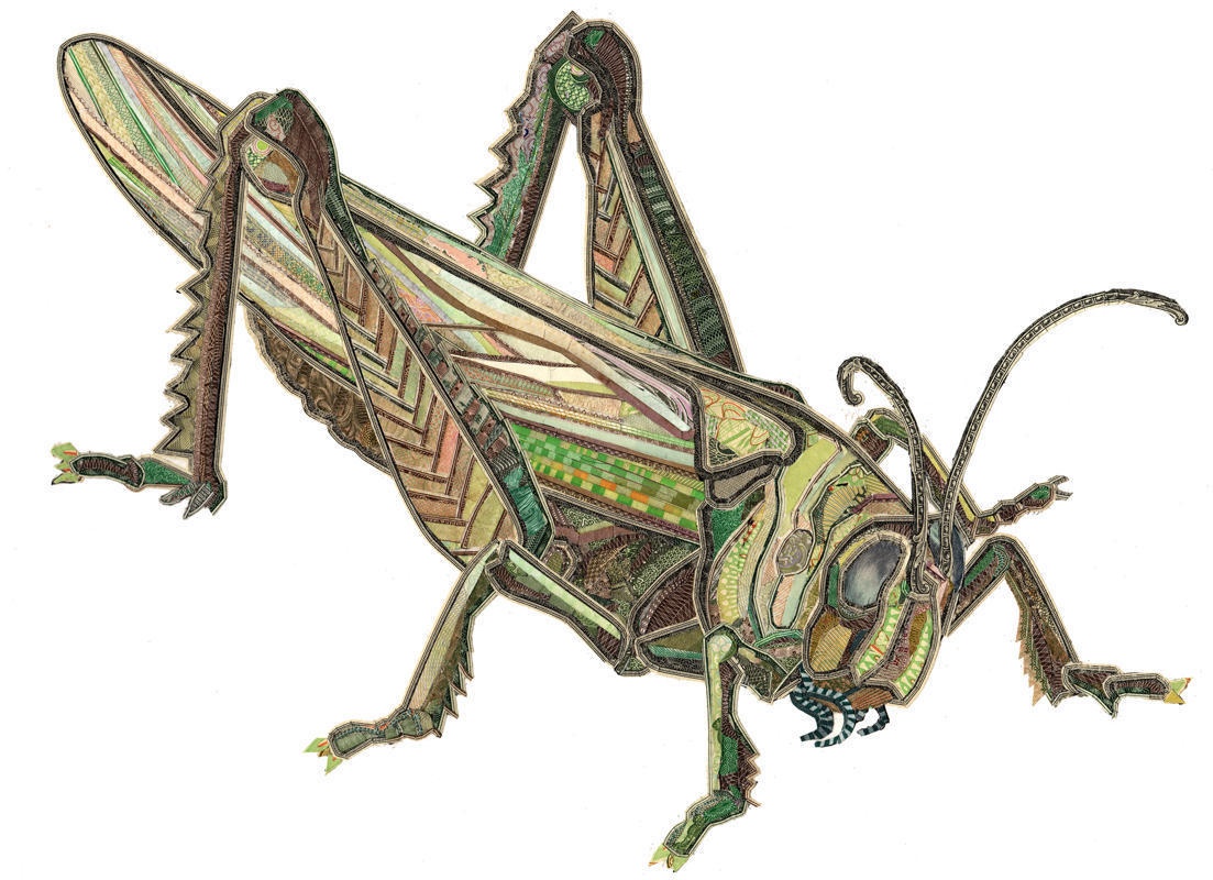 | Bức tranh "Châu chấu" được ghép tỉ mỉ, công phu. |