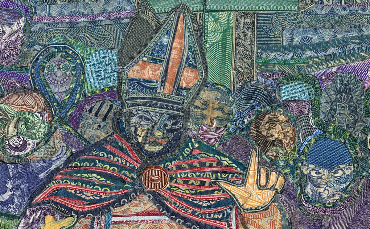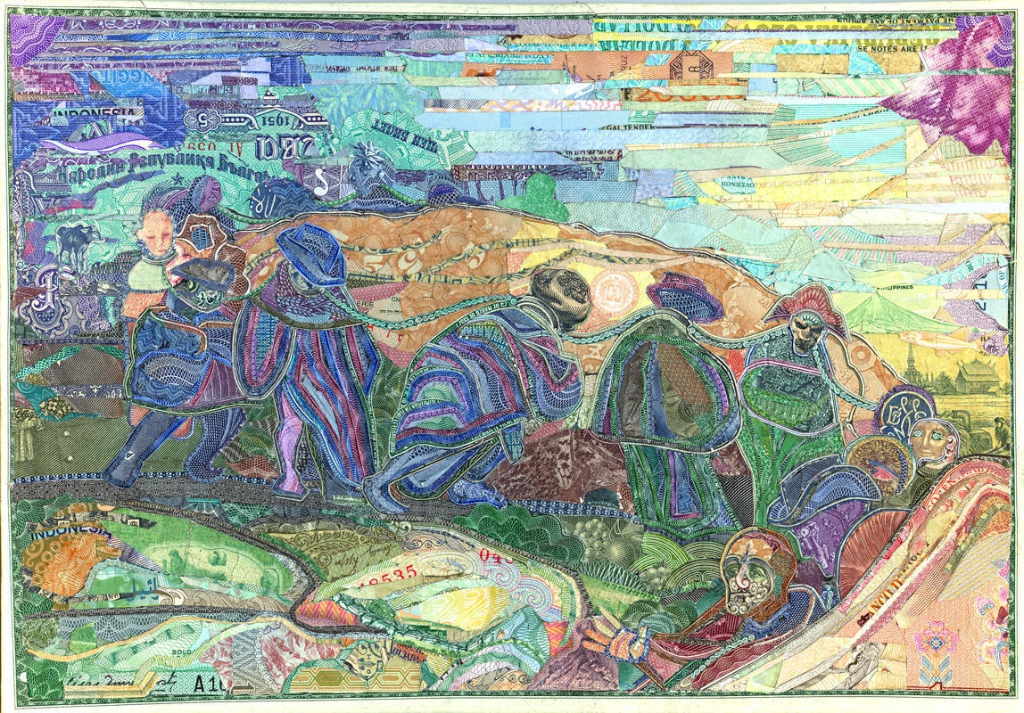 Một nghệ sĩ người Mỹ đã ghép những bức tranh tuyệt đẹp từ vô số loại tiền giấy trên thế giới, với nhiều chủ đề như chiến tranh, tôn giáo, lịch sử, xã hội, nghệ thuật...
