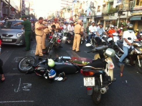 Ngày 5/9/2013, chị Dương Diễm Diệp Trinh (quê ở Quảng Trị) đi xe đạp trên đường Lê Văn Sỹ (quận 3). Khi đến trước hẻm 386 thì xảy ra va chạm với một xe gắn máy khác đi từ dưới lên.