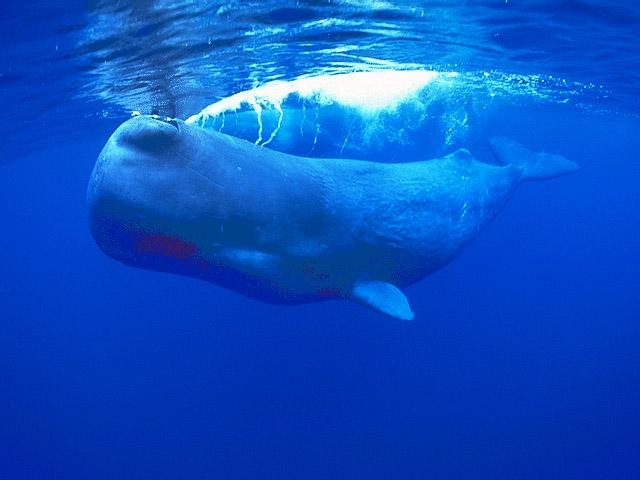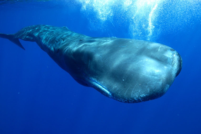 Cá nhà táng có thể lặn sâu nhờ khả năng nín thở lên tới 90 phút. Cấu tạo cơ thể giúp cá nhà táng thích nghi tốt với sự biến thiên đột ngột về áp suất của nước. Lồng ngực linh hoạt giúp chúng tiết kiệm oxy và hạn chế hấp thụ nitơ. Ngoài ra, máu cá voi có lượng hồng cầu cao, giúp chúng mang thêm nhiều dưỡng khí. Ảnh: Wikipedia. |