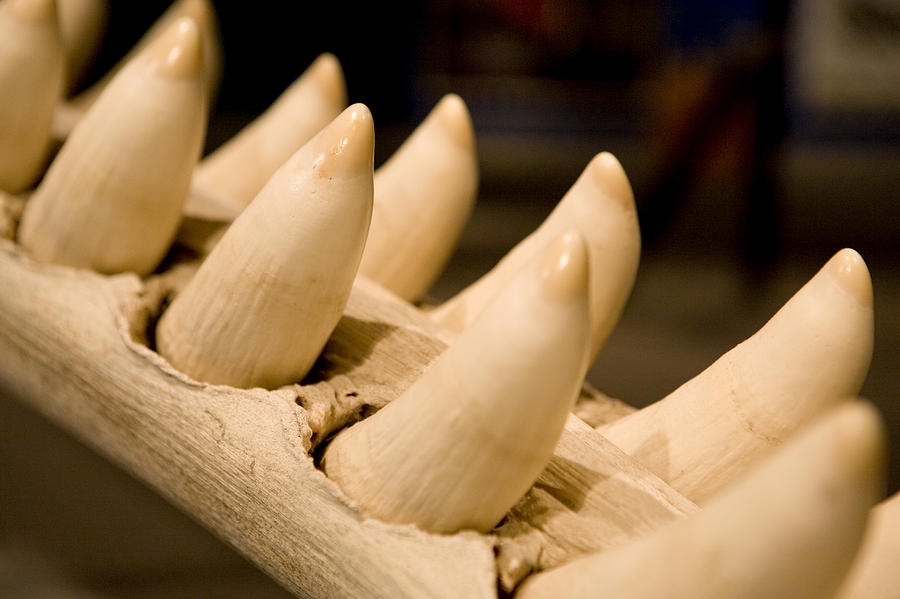 Trên thực tế, hàm dưới của cá nhà táng rất hẹp. Chúng có 18 – 26 chiếc răng ở mỗi bên của hàm dưới và khớp với các lỗ nằm ở hàm trên. Răng cá nhà táng hình chóp nón, có thể đạt khối lượng tới 1 kg/chiếc. Các nhà nghiên cứu cho rằng, răng của cá nhà táng không giúp ích nhiều cho chúng trong việc săn mồi. Người ta phát hiện nhiều xác mực còn nguyên vẹn trong dạ dày của chúng. Ảnh: Wikipedia. |