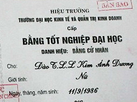 Còn ở Thái Nguyên cũng có một cô gái mang tên dài nhất tỉnh Thái Nguyên: Đào Thị Long Lanh Kim Ánh Dương.