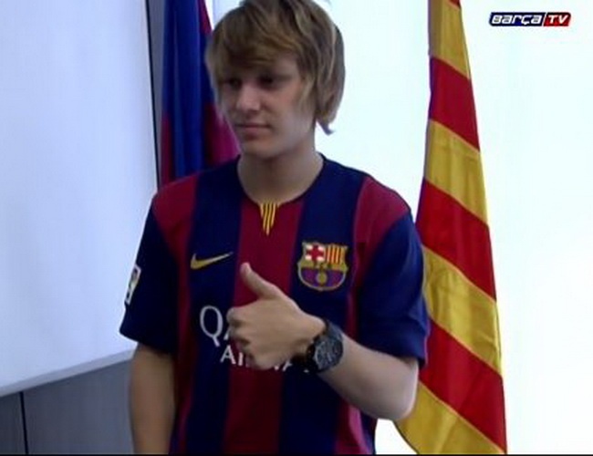 | Joseph Minala (Lazio) trông như một ông già khi đứng cạnh Alen Halilovic (Barcelona) dù cùng ở tuổi 18. |