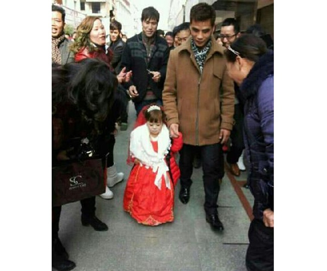 | Cũng trong những ngày tháng 2, các diễn đàn mạng Trung Quốc đua nhau chia sẻ hình ảnh đám cưới của cặp đôi “đũa lệch” chồng cao gấp đôi vợ. |