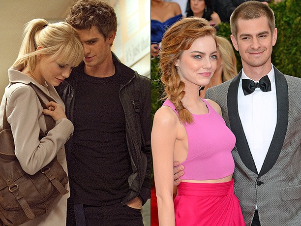 | Hai diễn viên đóng đôi uyên ương của The Amazing Spider - Man Emma Stone và Andrew Garfield nhanh chóng có cảm tình ngoài đời trong quá trình làm phim và bí mật kết hôn vào tháng 6 năm nay. |