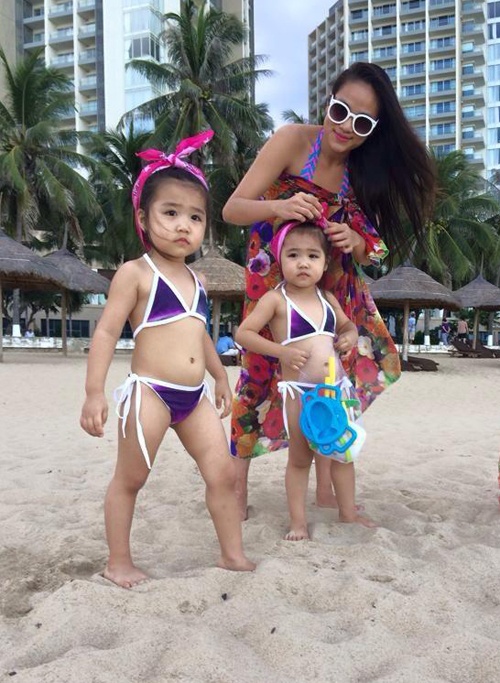 Hai bé luôn được mẹ cho ăn mặc giống hệt nhau nên người ngoài khó phân biệt được đâu là chị, đâu là em. Duyên Anh chia sẻ, các con có tính cách điệu đà giống hệt cô hồi nhỏ.