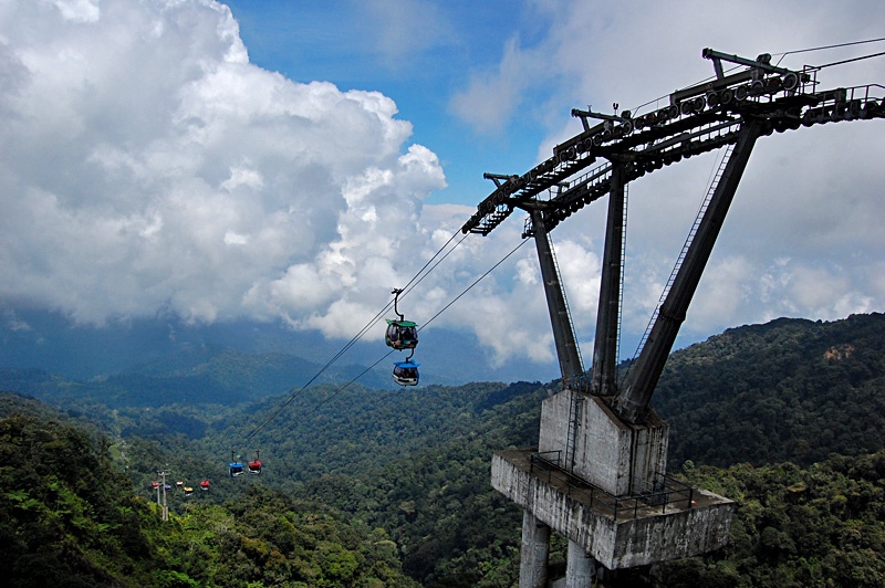 Genting Skyway, Malaysia: Đây là cáp treo nhanh nhất thế giới, nối thị trấn Gohtong Jaya với khu giải trí Resort Hotel ở cao nguyên Genting, bang Pahang. Khu giải trí nằm ở độ cao 2.027 m so với mực nước biển, với các công viên, cửa hàng, khách sạn và một sòng bài. Genting Skyway chở được hơn 2.000 người một giờ, với 8 hành khách mỗi khoang. Tốc độ tối đa của cáp treo là 21,6 km/h, đưa du khách lên đỉnh núi trong 15 phút. Ảnh: Anubimb. |