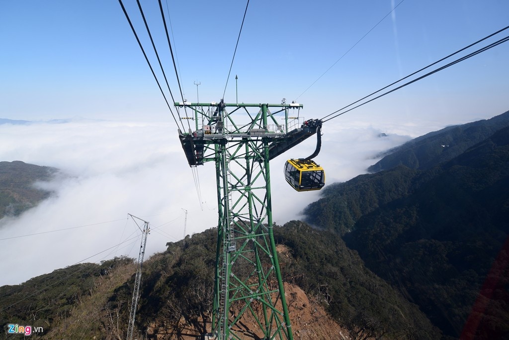 Cáp treo ba dây có độ chênh giữa ga đi và ga đến lớn nhất thế giới (1.410 m) và Cáp treo ba dây dài nhất thế giới (6.292,5 m). Cáp treo đưa du khách lên độ cao 3.000 m trên đỉnh núi cao nhất Việt Nam trong 15 phút, cho bạn cơ hội ngắm nhìn biển mây giữa núi rừng hùng vĩ. Ảnh: Anh Tuấn. |