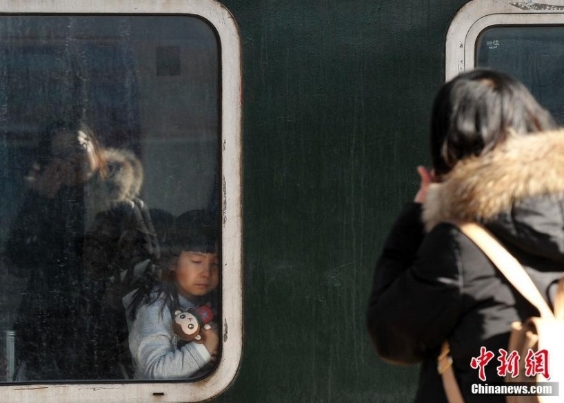 Ngậm ngùi tiễn con rời nhà ga tại thành phố Thái Nguyên, tỉnh Sơn Tây, miền bắc Trung Quốc, trước khi tàu chạy vào ngày 2/2, Zhang cố gắng trò chuyện thêm với cô con gái nhỏ.