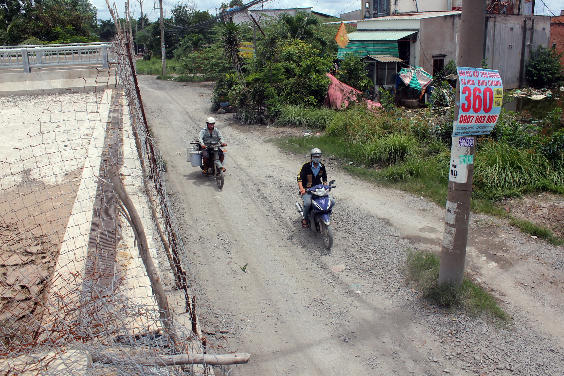 | Đoạn cầu còn lại và đường cũng chưa được giải phóng mặt bằng. Ông Nguyễn Minh Hoàng - Phó trưởng ban Bồi thường giải phóng mặt bằng huyện Bình Chánh - thông tin, dự án đường tỉnh lộ 10B đến nay vẫn chưa có kinh phí để trả cho người dân. Huyện đã có văn bản gửi chủ đầu tư đề nghị cấp tiền và chủ đầu tư khẳng định đã đăng ký vốn với Sở Kế hoạch Đầu tư TP.HCM nhưng đến nay chưa giải quyết. |