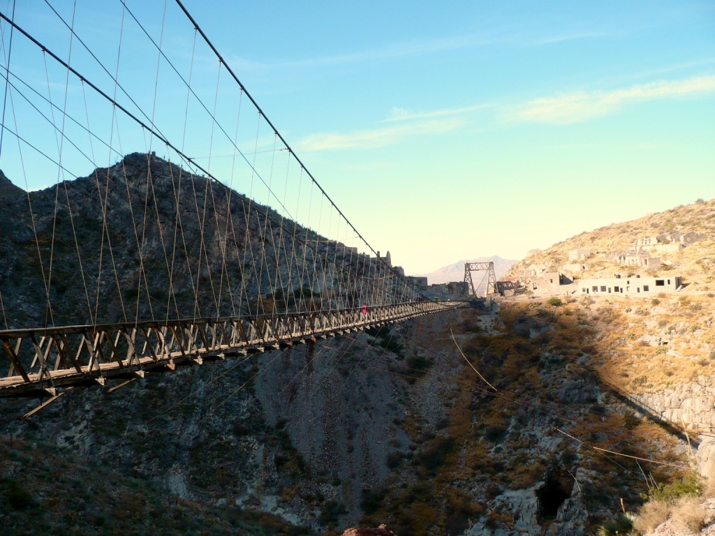 | Cầu Puente de Ojuela treo lơ lửng qua vách núi dẫn tới thị trấn ma Ojuela, một khu khai thác mỏ cũ ở phía bắc bang Durango, Mexico. Theo báo cáo, những sợi dây văng treo từ hai tòa tháp đã hơn một thế kỷ và nó có thể sập bất cứ lúc nào. Ảnh: Mirror. |