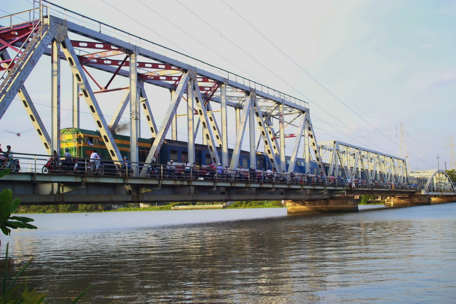 | Cầu được kết cấu vòm thép, có đường ray xe lửa, và đường phụ cho xe máy lưu thông 2 chiều. |