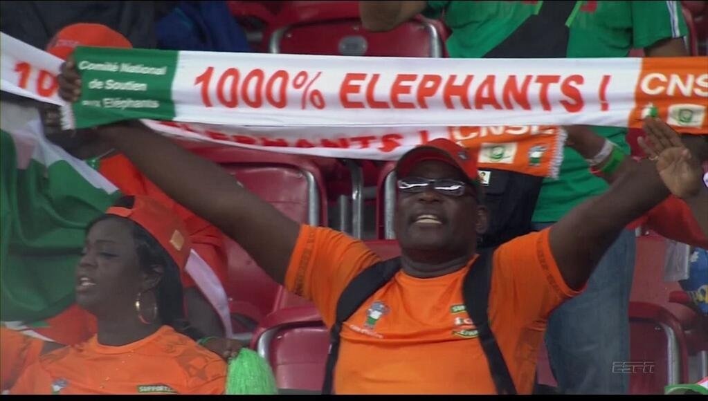 | CĐV Bờ Biển Ngà này lại muốn Didier Drogba và các đồng đội luôn ra sân với 1000% phong độ. |