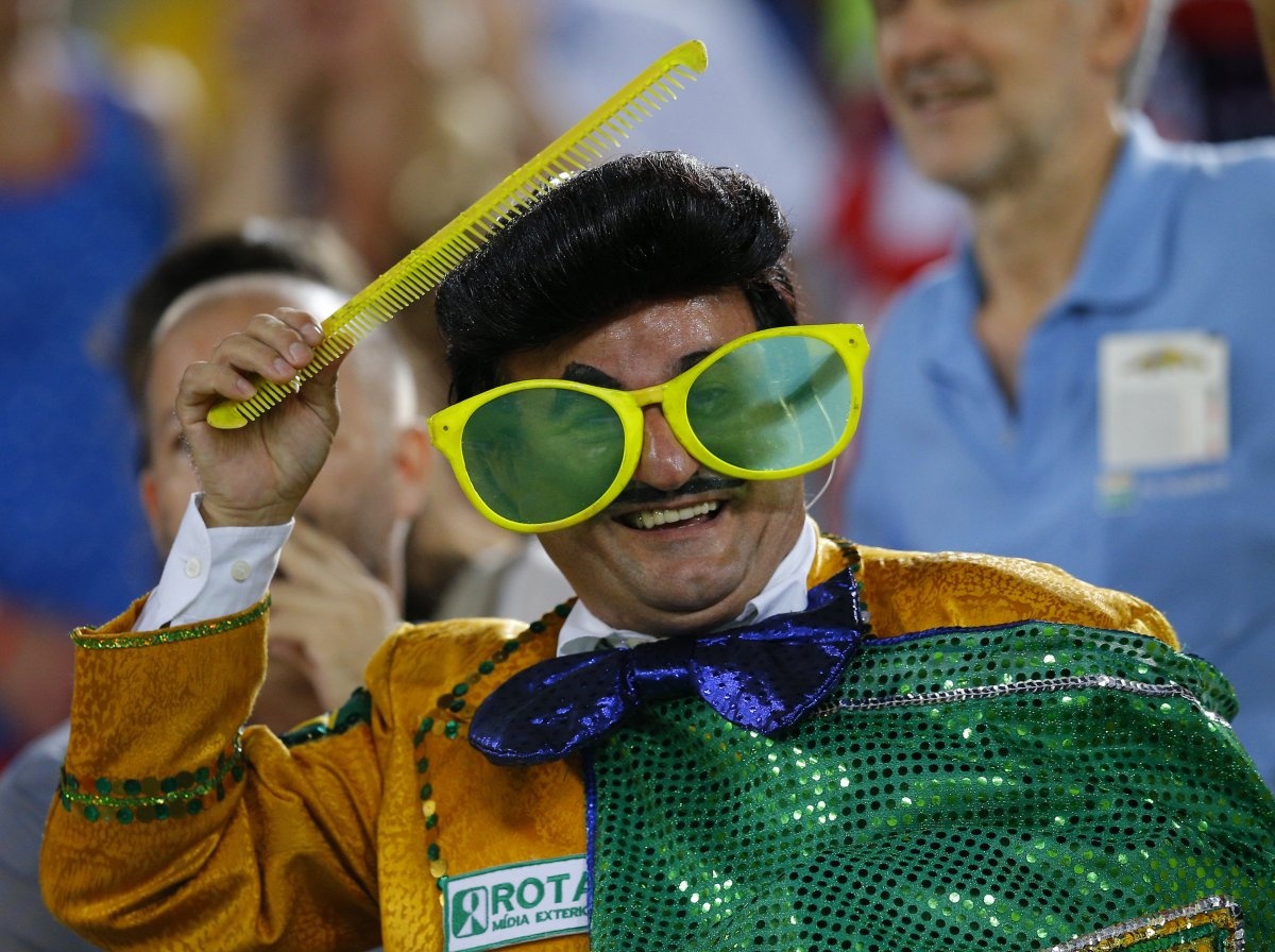 | CĐV Brazil lấy hình ảnh của một diễn hài kịch, vốn phổ biến tại xứ sở samba. |
