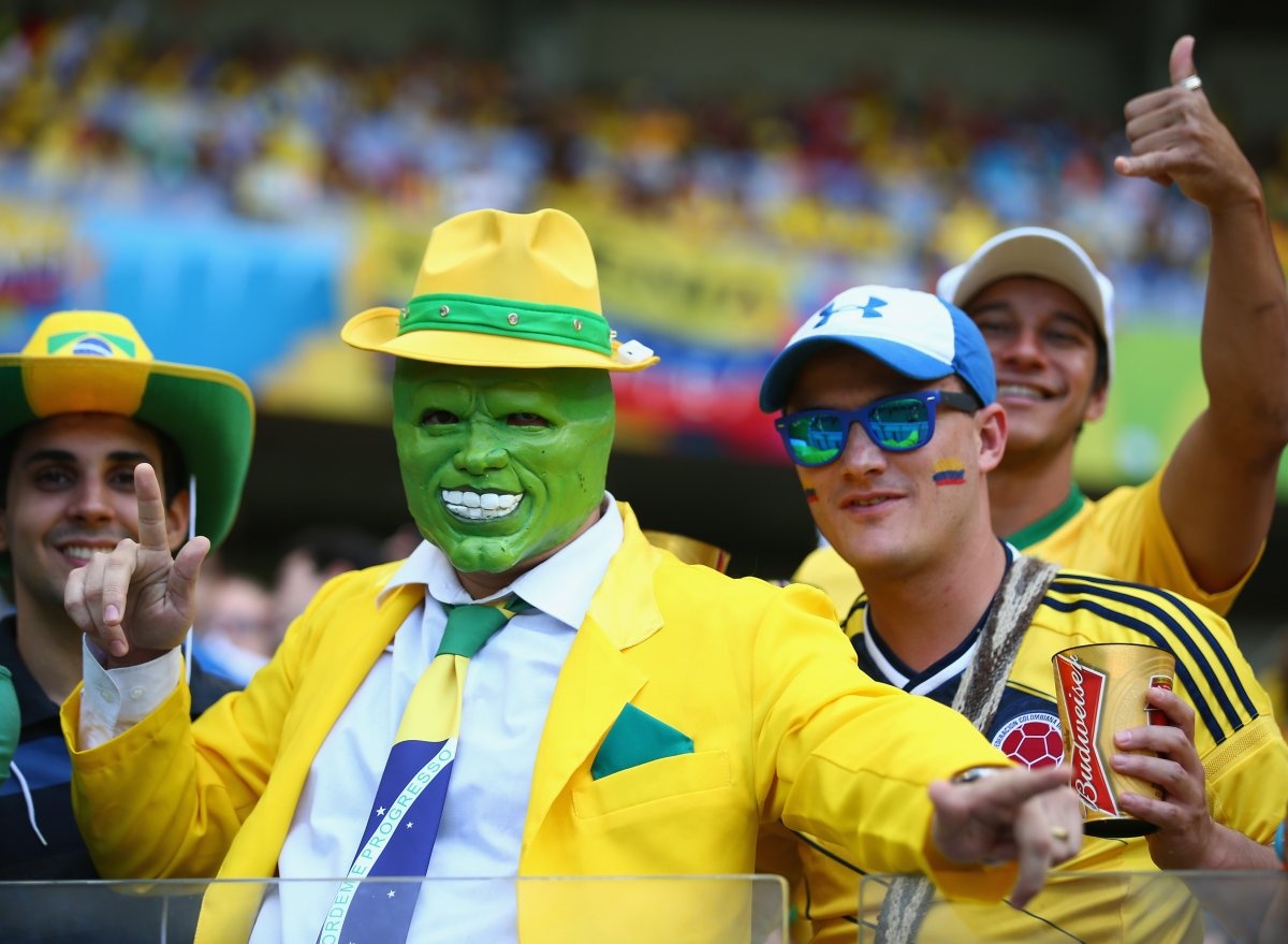 | Fan hâm mộ Brazil này lại chọn cho mình chiếc mặt nạ như trong bộ phim nổi tiếng "The Mask" của nam diễn viên hài Jim Carrey. |