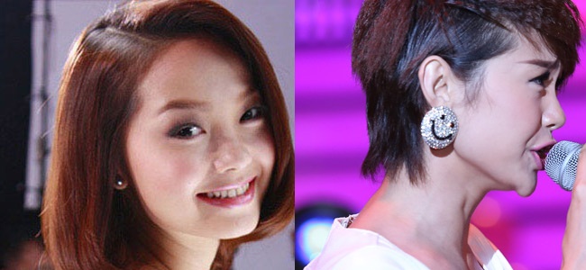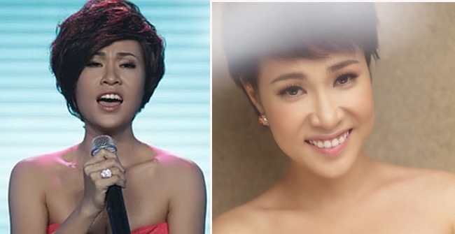 Gương mặt Quán quân Vietnam Idol 2011 Uyên Linh cũng ngày càng thanh thoát hơn nhờ chiếc cằm "dài theo năm tháng" (phải). Nếu so với hình ảnh ngày cô còn trong cuộc thi (trái) hẳn bạn sẽ thấy sự khác biệt lớn.