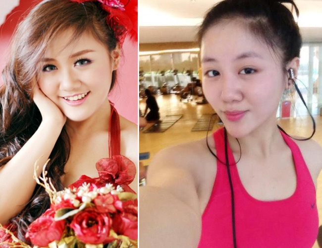 Trước kia, Hương Tràm sở hữu gương mặt bầu bĩnh (trái). Sau khi đăng quang Giọng hát Việt không lâu, nhan sắc Hương Tràm mặn mà hơn hẳn, đặc biệt, gương mặt bỗng dài ra bất ngờ nhờ chiếc cằm lạ (phải).