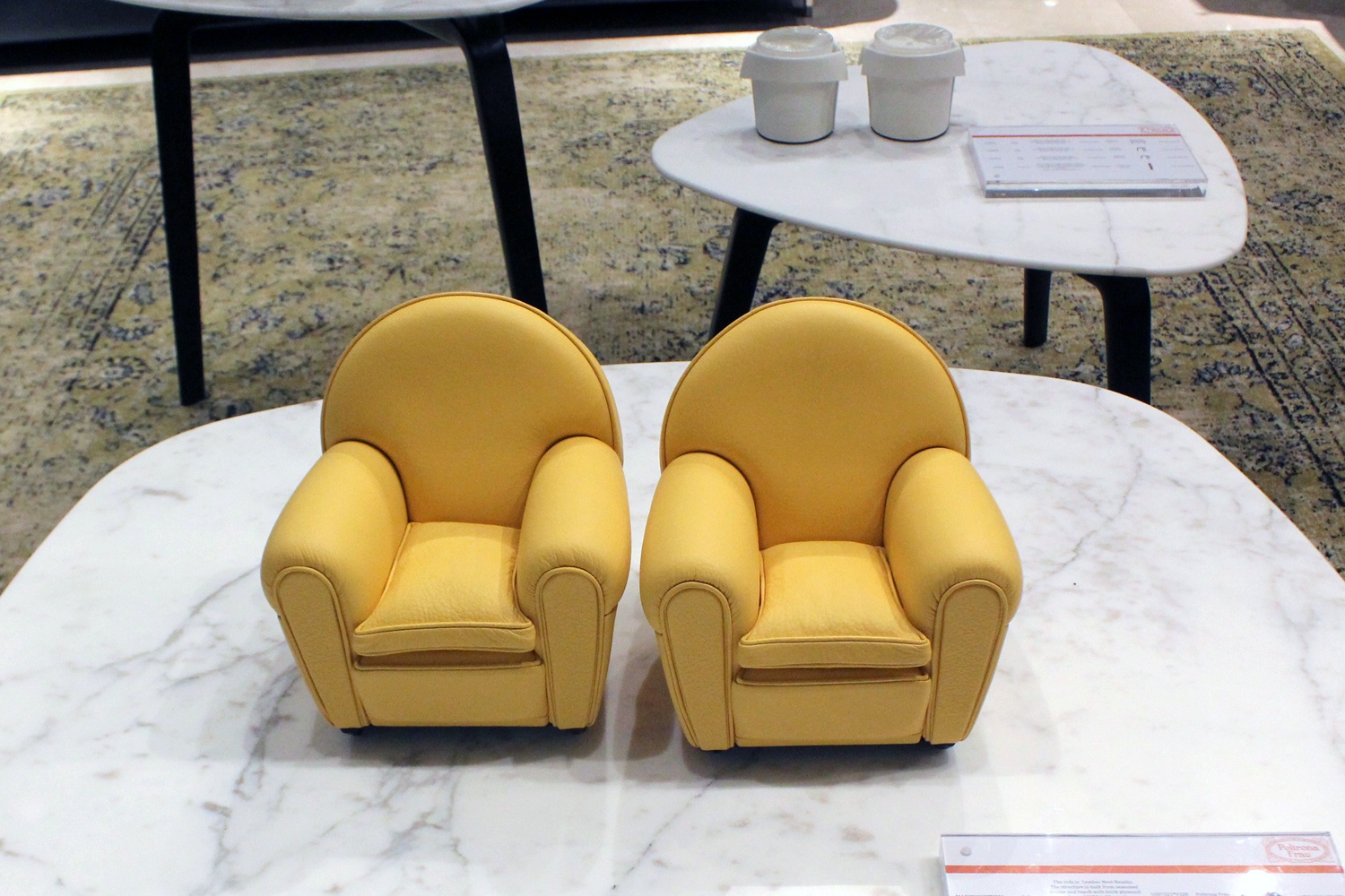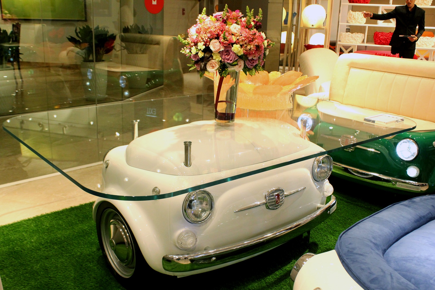 Nổi bật nhất là bộ bàn ghế phong cách ôtô cổ với giá bán mỗi chiếc là 284 triệu đồng. Cả bộ gồm 3 ghế và 1 chiếc bàn có giá 1,16 tỷ đồng, lần đầu xuất hiện tại Việt Nam.
