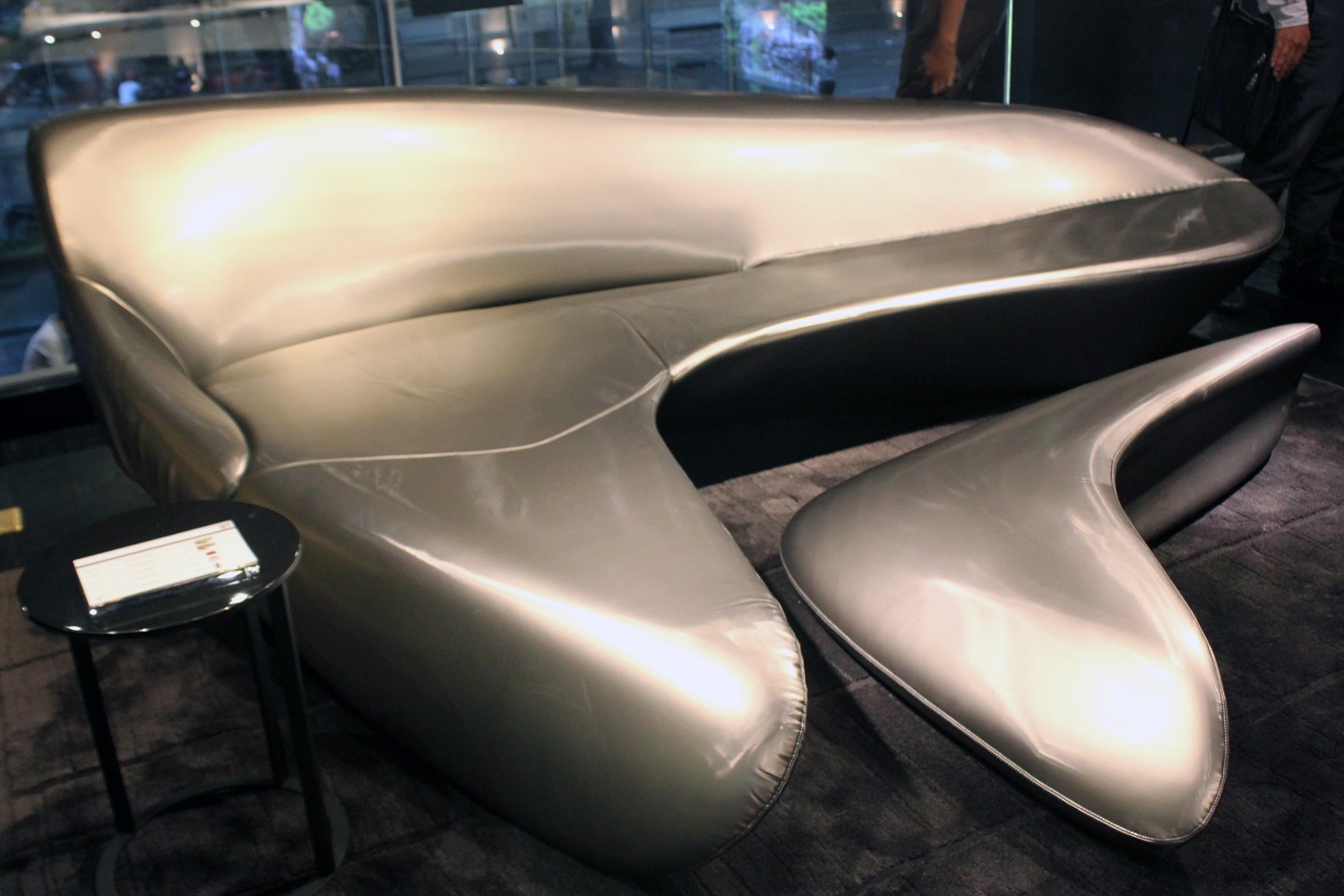 | Bộ salon có thiết kế như những chiếc phi thuyền có giá hơn 300 triệu đồng. Trên các sản phẩm đều có đóng logo độc quyền của nhà sản xuất, ghi rõ số hiệu, tên sản phẩm và xưởng sản xuất từ Italy. |
