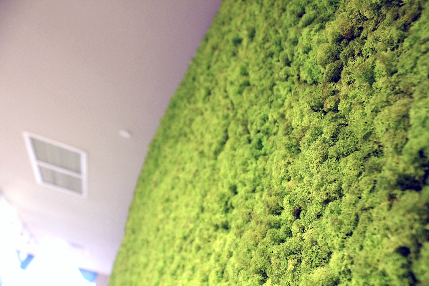 Ngoài ghế, nơi đây còn trưng bày nhiều sản phẩm độc đáo khác. Trong ảnh là một loại rêu sống trong nhà đã được xử lý hóa chất, dùng để trang trí lên tường, tạo những mảng màu tự nhiên, không cần tưới nước cây vẫn xanh.
