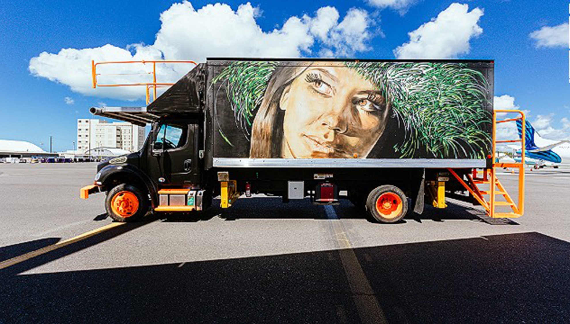 Hãng hàng không Hawaiian mới đây quyết định mở rộng thương hiệu của mình với hình ảnh nghệ thuật truyền thống trên thân máy bay. Thiết kế này cũng được áp dụng cho các phương tiện dịch vụ tại sân bay quốc tế Honolulu của hãng. |