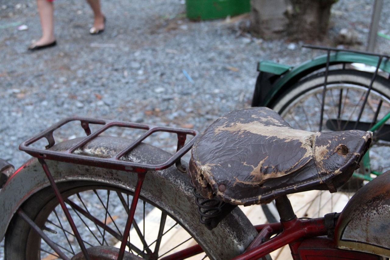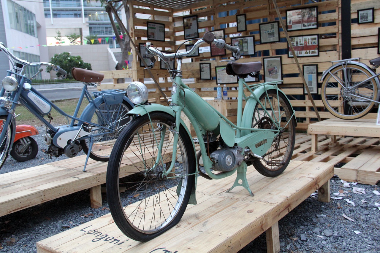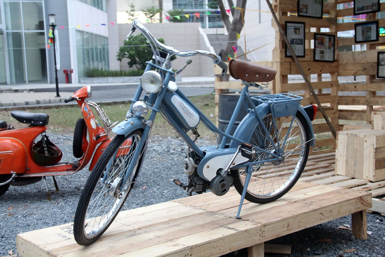 | Những chiếc xe cổ được trưng bày có kiểu dáng của xe đạp, nhưng đều được gắn động cơ. |