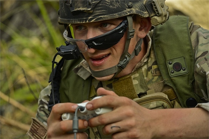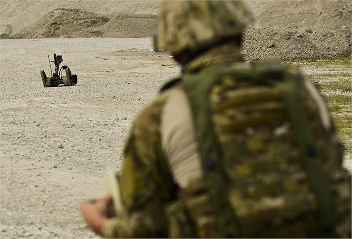 | Nhìn binh sĩ này nhiều người nghĩ anh đang chơi game trên X-Box chứ không phải điều khiển robot phá bom. |