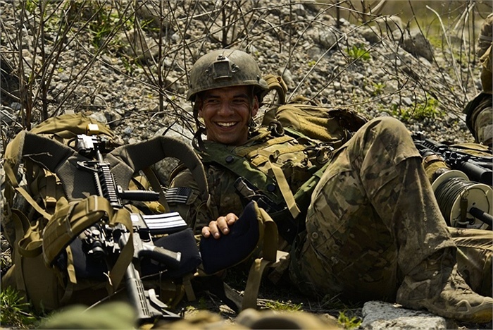| Ngồi nghỉ trên đường hành quân về căn cứ. |