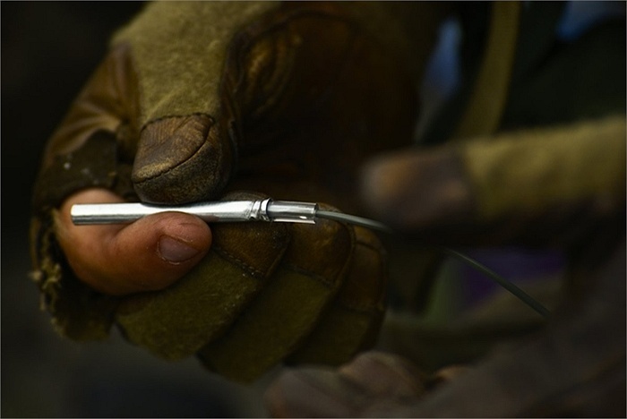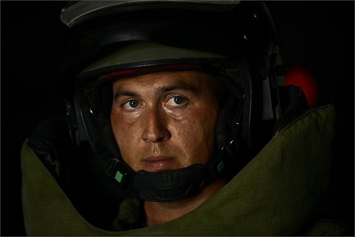 Những người trực tiếp phá bom sẽ mặc bộ quần áo bảo hộ nặng 45 kg với hệ thống làm mát bên trong. |